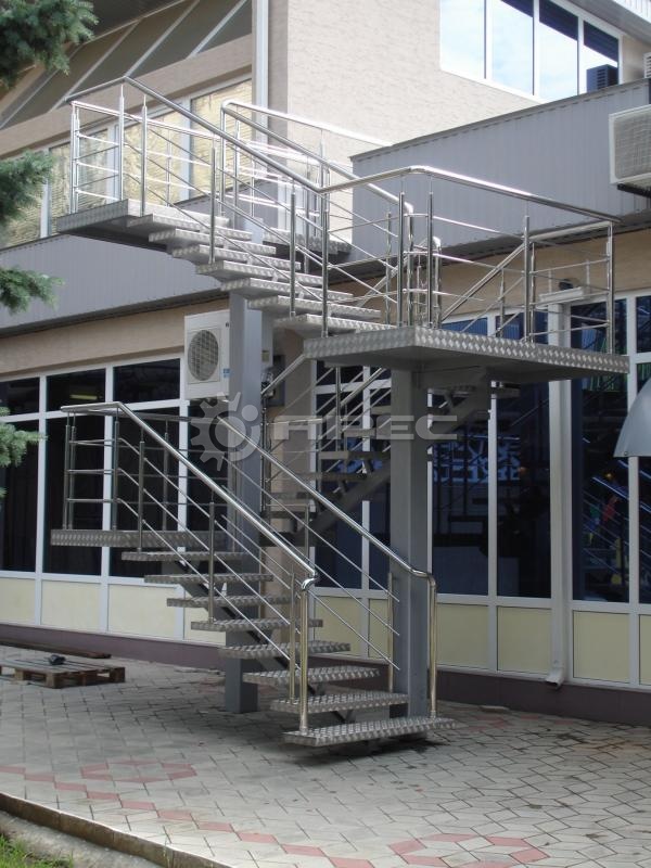 - Противопожарная система здания предусматривает установку внутренней лестничной конструкции маршевого типа. Самыми оправданными и экономически выгодными являются изделия из металла: элементы ограждения эвакуационных лестниц отличаются высокой надежностью и прочностью, соответствуют требуемым нормам безопасности.