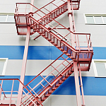Наружная пожарная лестница маршевого типа для эвакуации предназначена для безопасного выхода из зданий при чрезвычайных ситуациях. Конструкция соответствует требованиям ГОСТ 53254-2009 и проходит обязательную сертификацию. Стальной каркас выдерживает расчетные нагрузки при массовом перемещении людей в экстренных случаях.