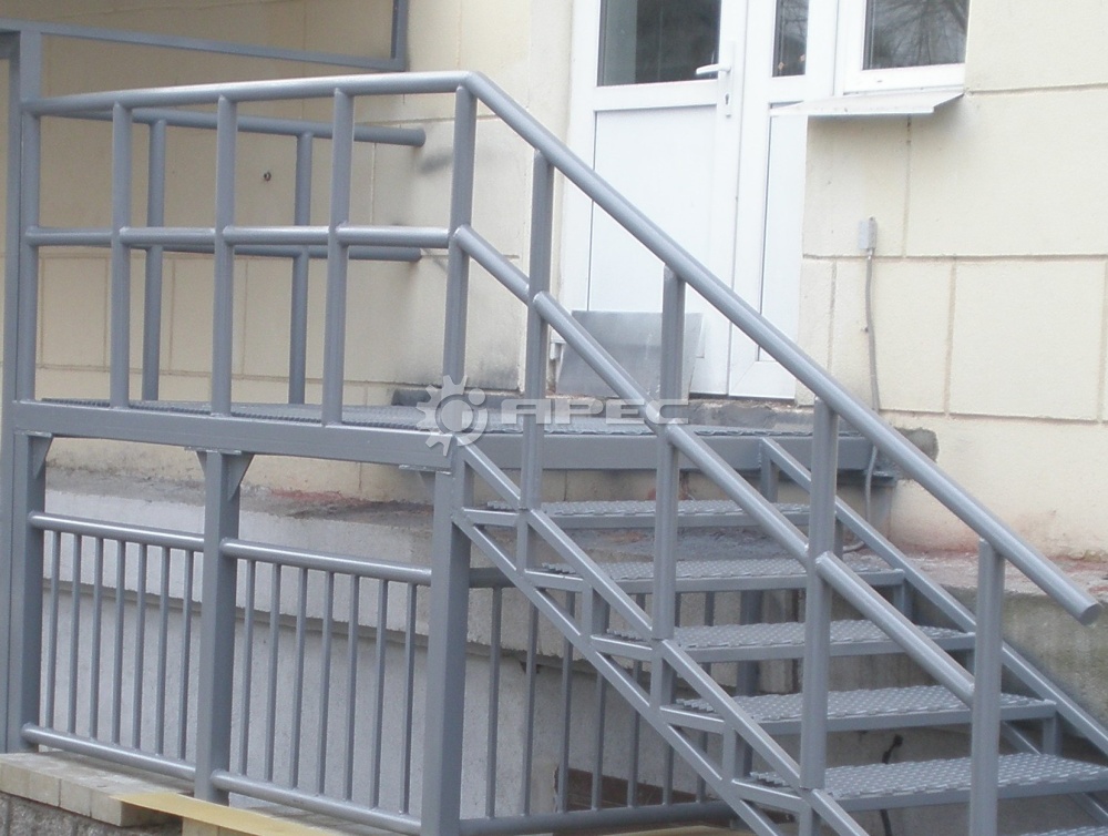 Металлические ступени используются преимущественно для наружных лестниц и технических переходов. Они изготавливаются из сварных решёток или решетчатого настила, устойчивы к влаге и перепадам температуры. Шероховатая поверхность снижает риск скольжения, при необходимости применяется дополнительный противоскользящий профиль.