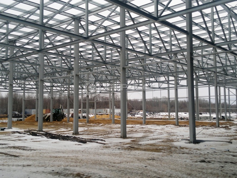 При возведении сооружения из металлоконструкций, сначала заливают бетонный фундамент, который должен обладать рядом характеристик и удовлетворят определённому типу колонн. Несущий каркас устанавливают на фундамент и удерживают при помощи закреплённых в нём анкерных болтов, стальных опорных листов или непосредственно самим фундаментом. Затем к стальному остову с помощью болтов и сварки присоединяют: перекрытия, фермы, продольные и поперечные балки, а также остальные элементы каркаса здания.