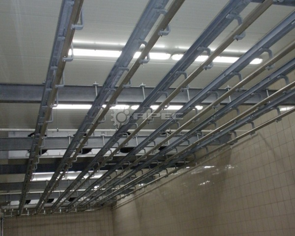 Компания «Арес» проектирует и производит подвесные транспортные системы для перемещения полутуш и других грузов на предприятиях мясоперерабатывающей промышленности. Мы изготавливаем магистрали, опоры и комплектующие из оцинкованной или нержавеющей стали, а также предлагаем варианты с грунтовкой и эмалевым покрытием для защиты от коррозии и агрессивной среды. Каждая система разрабатывается индивидуально на основе точных замеров площадей убойного цеха, мясокомбината, свинофермы или торгового помещения.