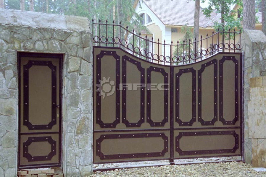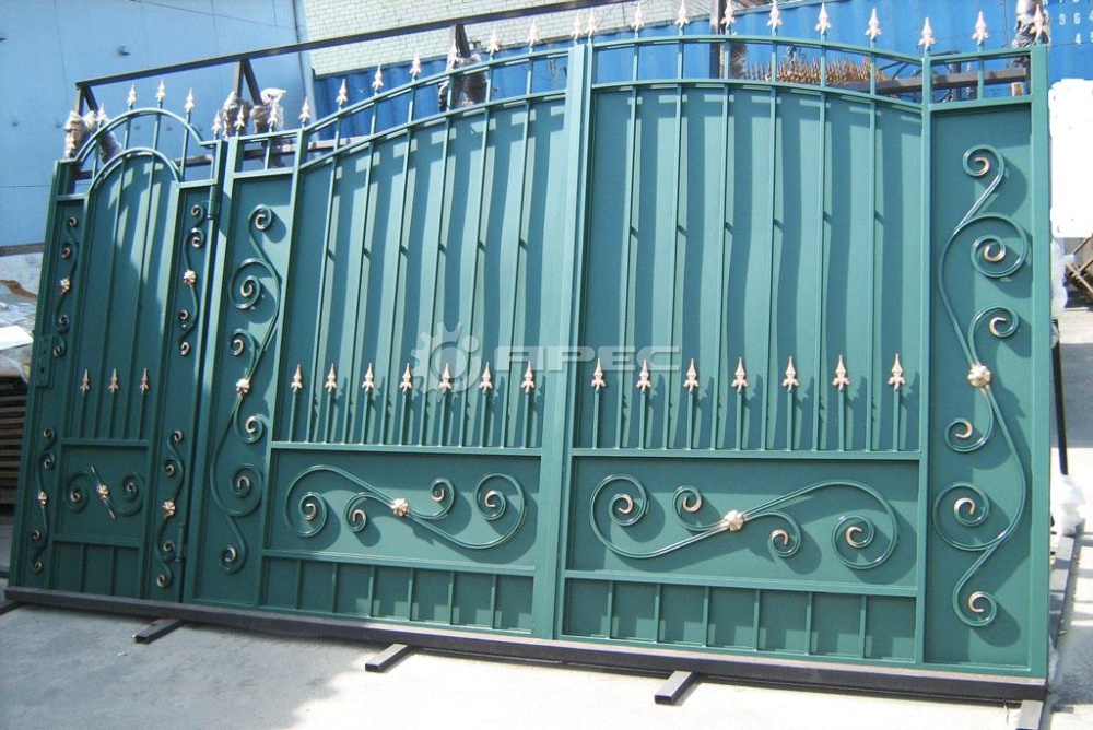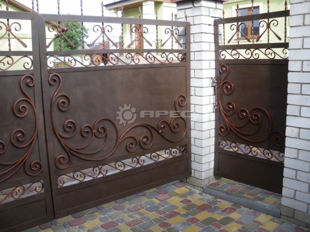 - Ворота с элементами художественной ковки, придающей индивидуальность.