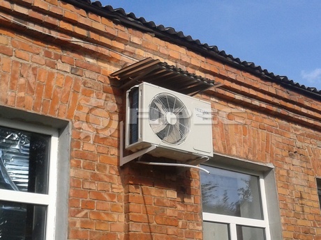 Навес устанавливается под углом, что обеспечивает свободный сход снега и сток дождевой воды. Это простое и экономичное решение значительно продлевает срок службы дорогостоящего климатического оборудования.