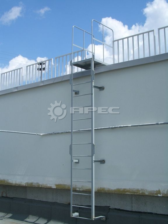- Пожарные лестницы в климатических зонах с низкой среднегодовой температурой могут устанавливаться снаружи, но при этом они не должны находиться выше 2-го этажа и не разрешено их использование в детских учреждениях. Наружные металлические конструкции вертикальные (с ограждениями и без них) крепятся непосредственно к стене здания. На маршевую конструкцию имеется выход на площадку на каждом этаже. Основным требованием безопасного пользования наружной лестницей является отсутствие возможного скапливания снега, осадков, песка и грязи. Обязательными являются испытания эвакуационных лестниц, которые проводятся 1 раз в 5 лет (не реже).