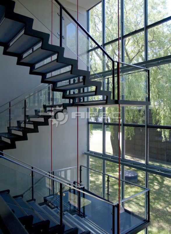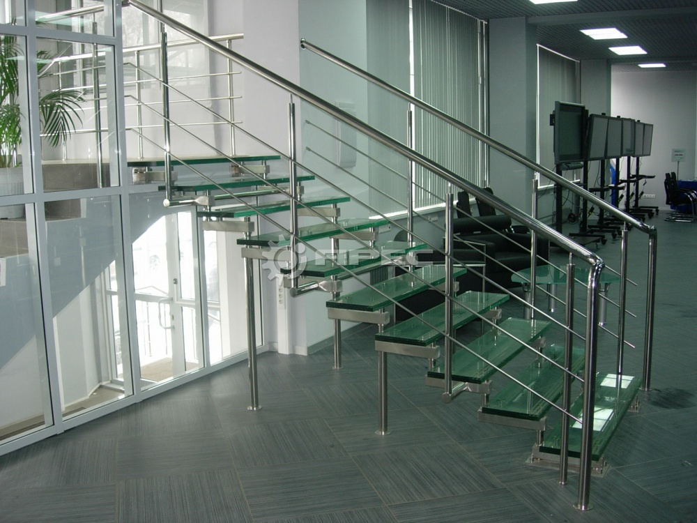 Стеклянные ступени применяются в интерьерах с повышенными требованиями к дизайну. Возможны различные варианты обработки поверхности, включая тонирование и нанесение декоративных элементов. Для повышения безопасности используется противоскользящий слой.