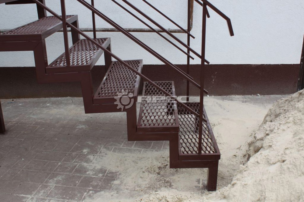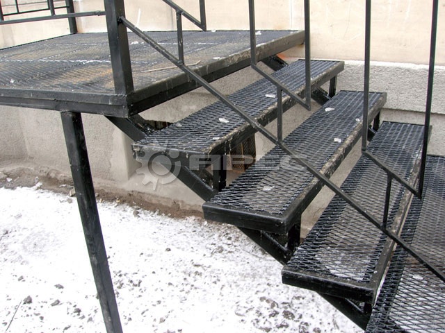 Металлические ступени используются преимущественно для наружных лестниц и технических переходов. Они изготавливаются из сварных решёток или решетчатого настила, устойчивы к влаге и перепадам температуры. Шероховатая поверхность снижает риск скольжения, при необходимости применяется дополнительный противоскользящий профиль.