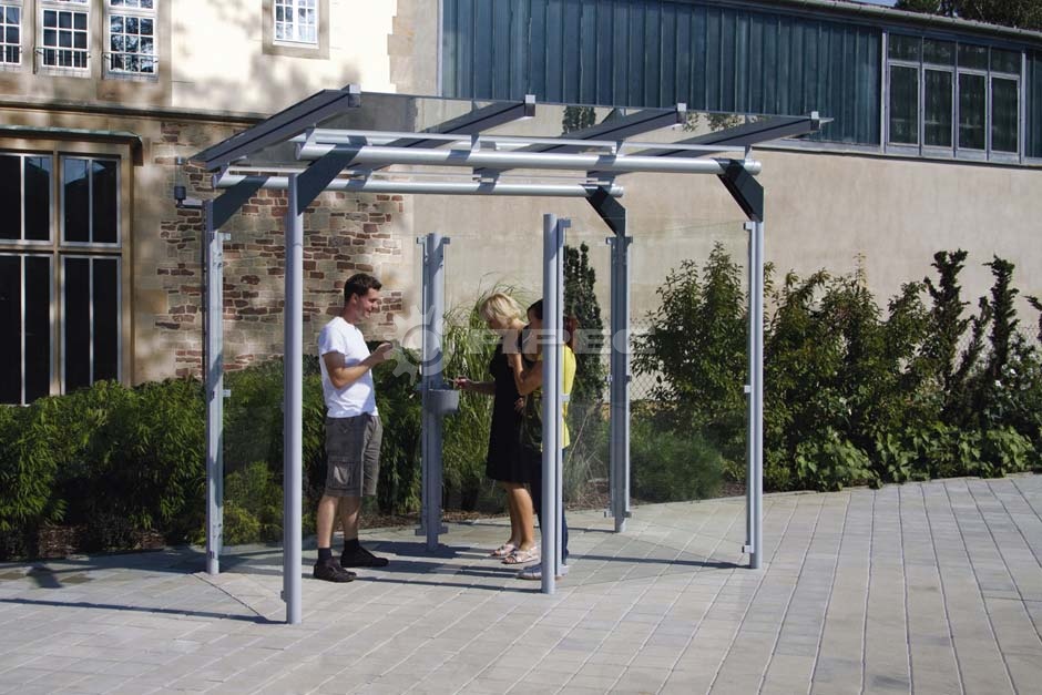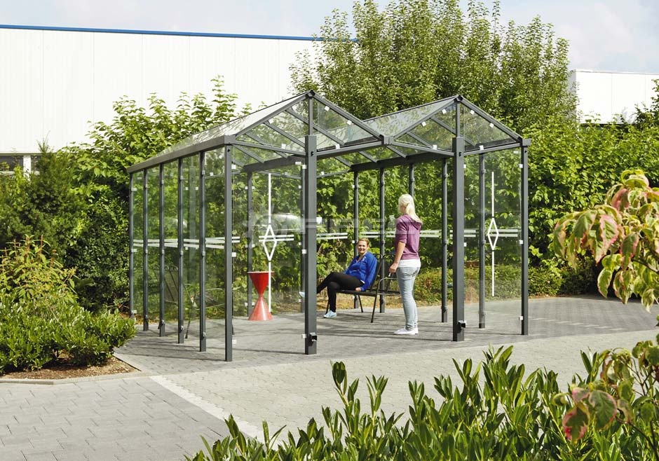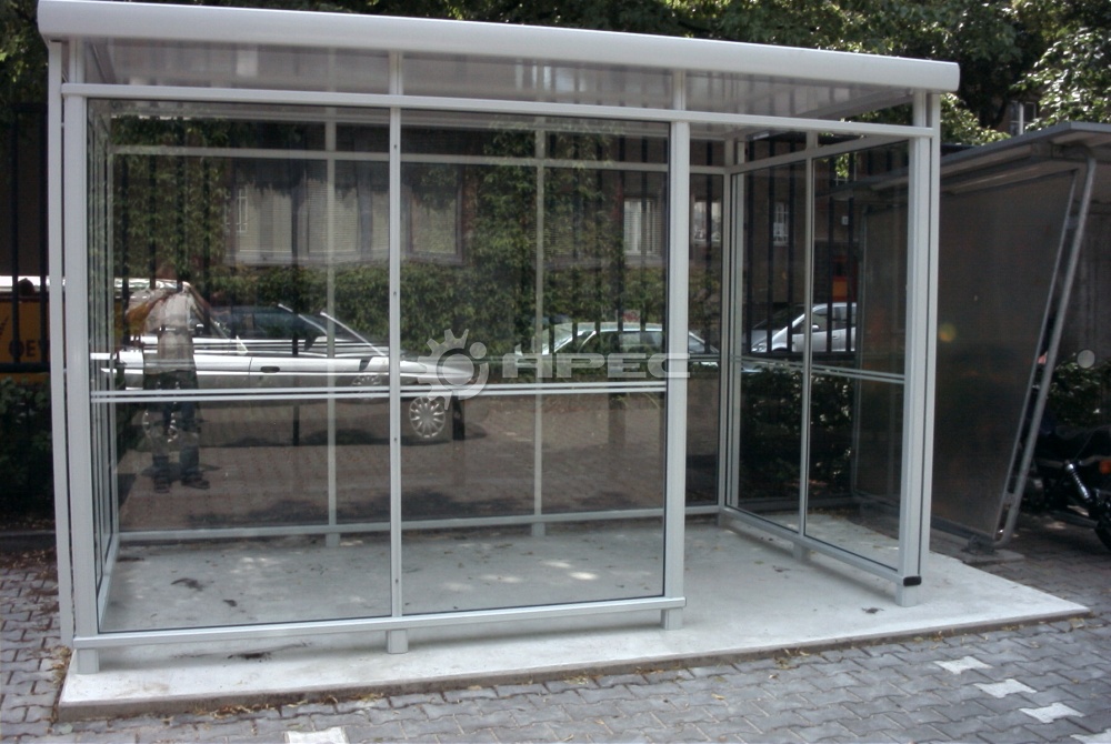- Стационарные павильоны — капитальные сооружения, устанавливаемые на подготовленное основание (фундамент). Отличаются повышенной прочностью, долговечностью и могут оснащаться дополнительным оснащением: освещением, вентиляцией, урнами, информационными табличками. Этот вариант предпочтителен для крупных предприятий, государственных учреждений и мест с постоянным потоком людей, таких как автобусные остановки.
