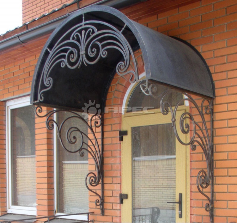 Ещё одним популярным материалом, который применяется в производстве декоративных козырьков, является металл. Большим спросом среди потребителей пользуются изделия из оцинкованной стали. Преимущество козырьков из нержавейки заключается в том, что они устойчивы перед внешними негативными воздействиями среды. Это очень важно, ведь навес над дверью будет постоянно подвергаться воздействию осадков, ветра и других природных явлений.