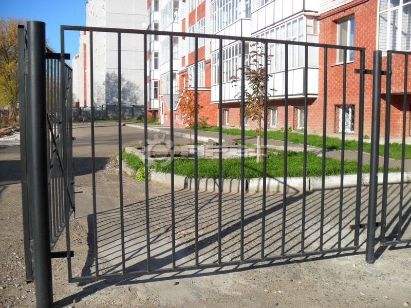 Сваренные на нашем производстве секции, установленные на забетонированные трубы или кирпичные столбы, называются секционным забором. Для производства секций мы используем разнообразный металлопрокат: трубы, уголки, прутки, полосы, а также элементы художественной ковки и сетку. Для дополнения вы можете заказать металлические сварные ворота и калитки.