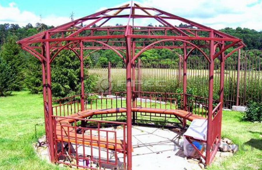 Металлические беседкиподходят для установки в садах, парках и на придомовых территориях. Каркас из стали дополняется декоративными элементами, включая кованые вставки. Конструкции допускают установку кровли, ограждений и дополнительных архитектурных деталей без потери прочности.