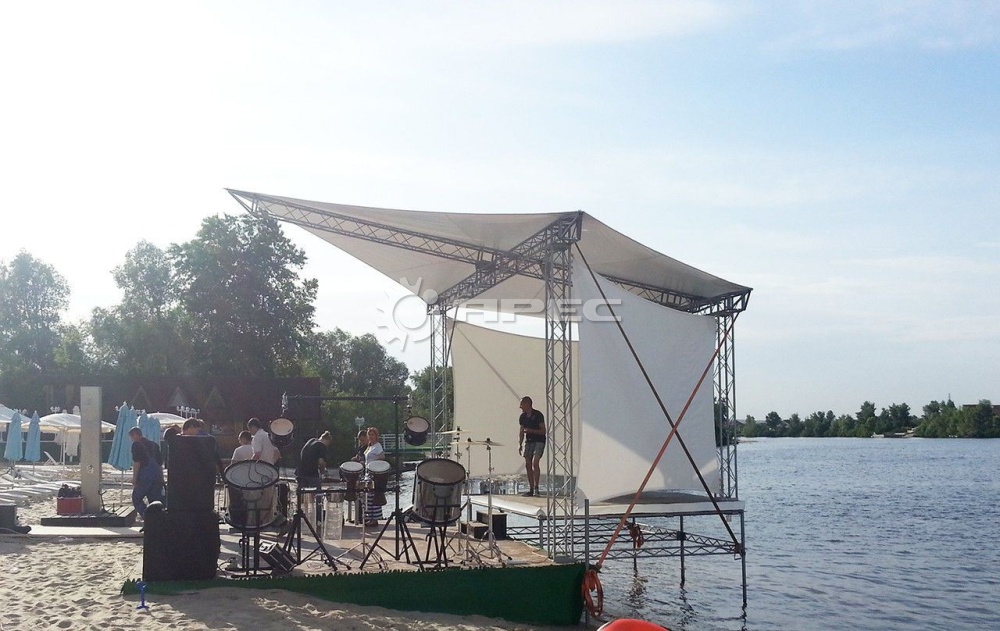 Секционная модульная система позволяет многократно использовать оборудование. Стандартизированные элементы упрощают логистику, сборку и хранение. Конструкция собирается силами бригады монтажников без применения тяжелой техники. Для мероприятий на открытом воздухе критически важна защита. Уличная сцена легко комплектуется сборной крышей, которая укроет технику и участников от дождя, ветра и солнца.
