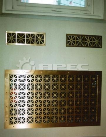 - Латунные решетки нашли широкое применение благодаря красивому внешнему виду, необычному цвету и высоким прочностным показателям.
