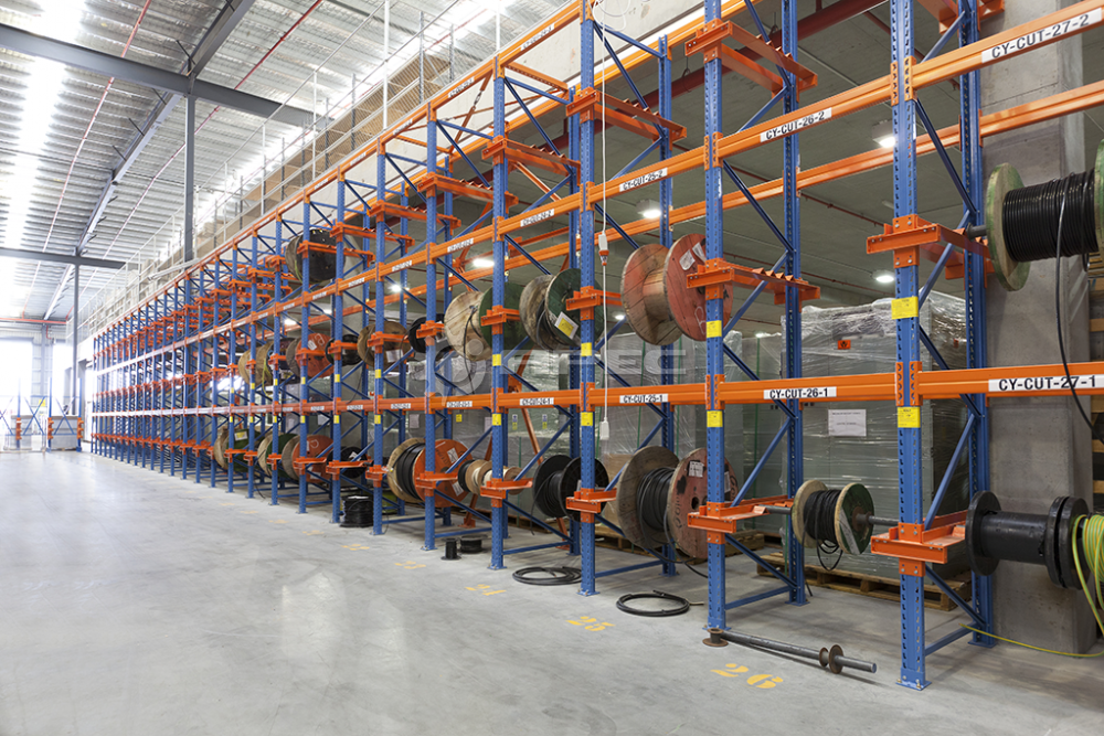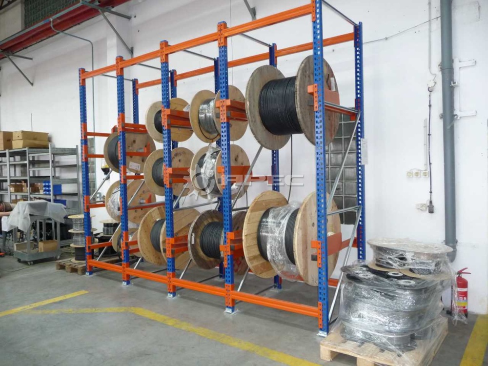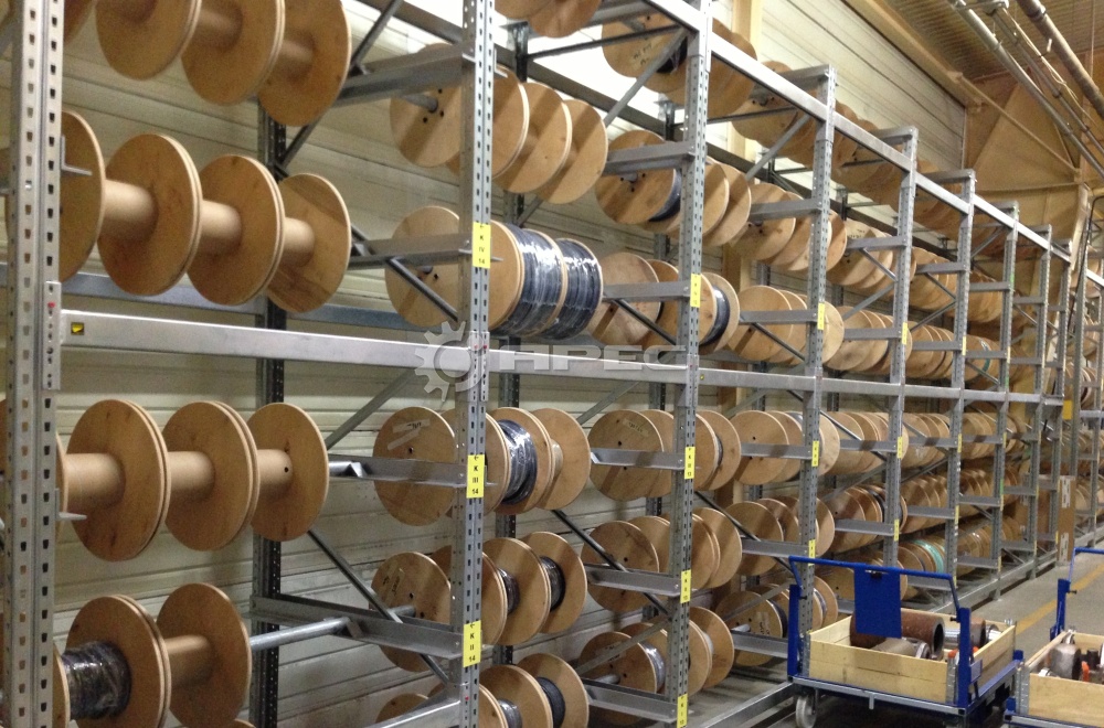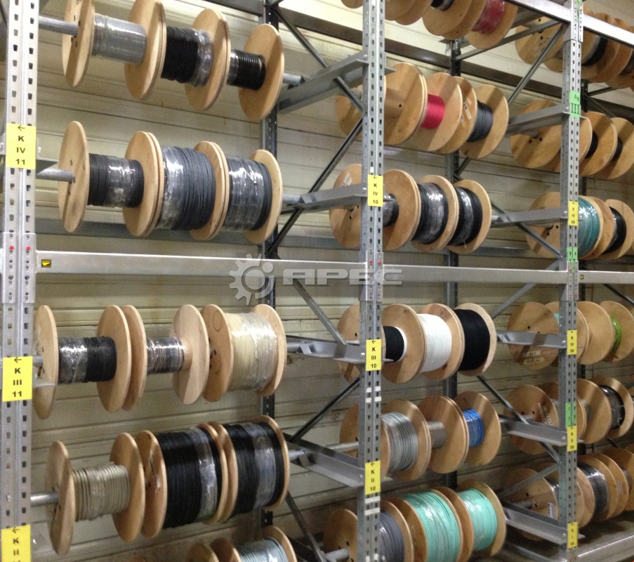 Для хранения объёмных и сложных при складировании предметов, таких как кабели, намотанные на барабаны или катушки, используют кабельные стеллажи. Эти системы — прозрачное и удобное решение для хранения кабельной продукции: