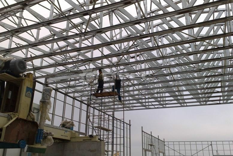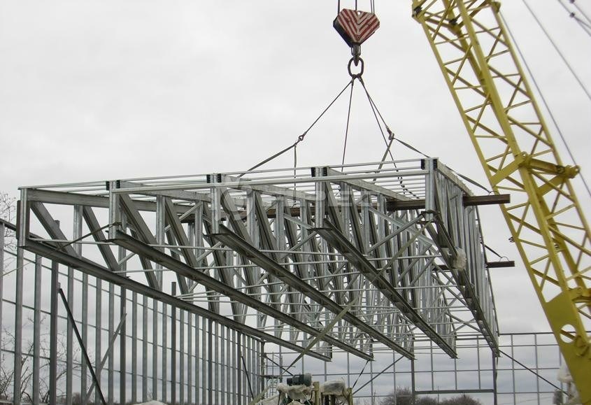 - Металлическая ферма – композиция из профильной трубы. Это самое легкое перекрытие из металла. Сечение трубы может быть не только овальным, но и квадратным или прямоугольным. Благодаря легкости и относительной прочности находит применение, в основном, в гражданском и сельскохозяйственном строительстве;