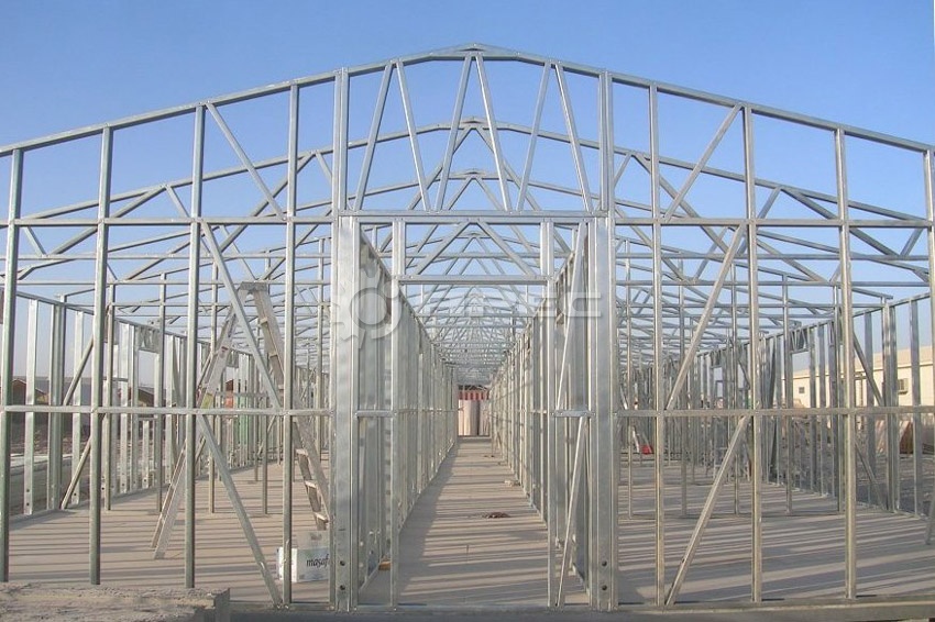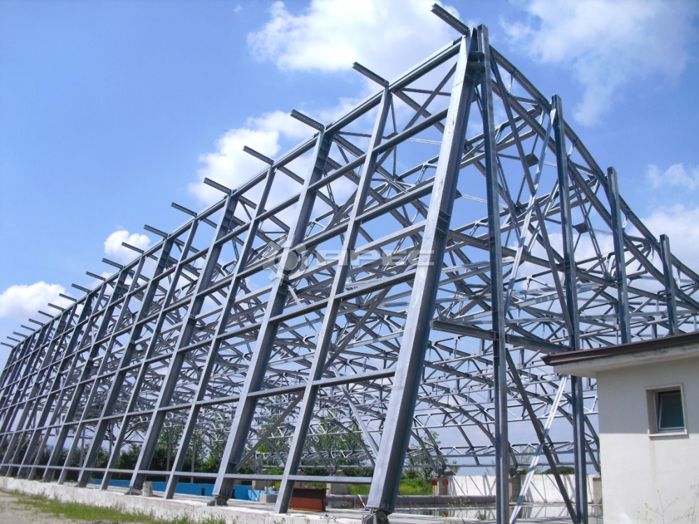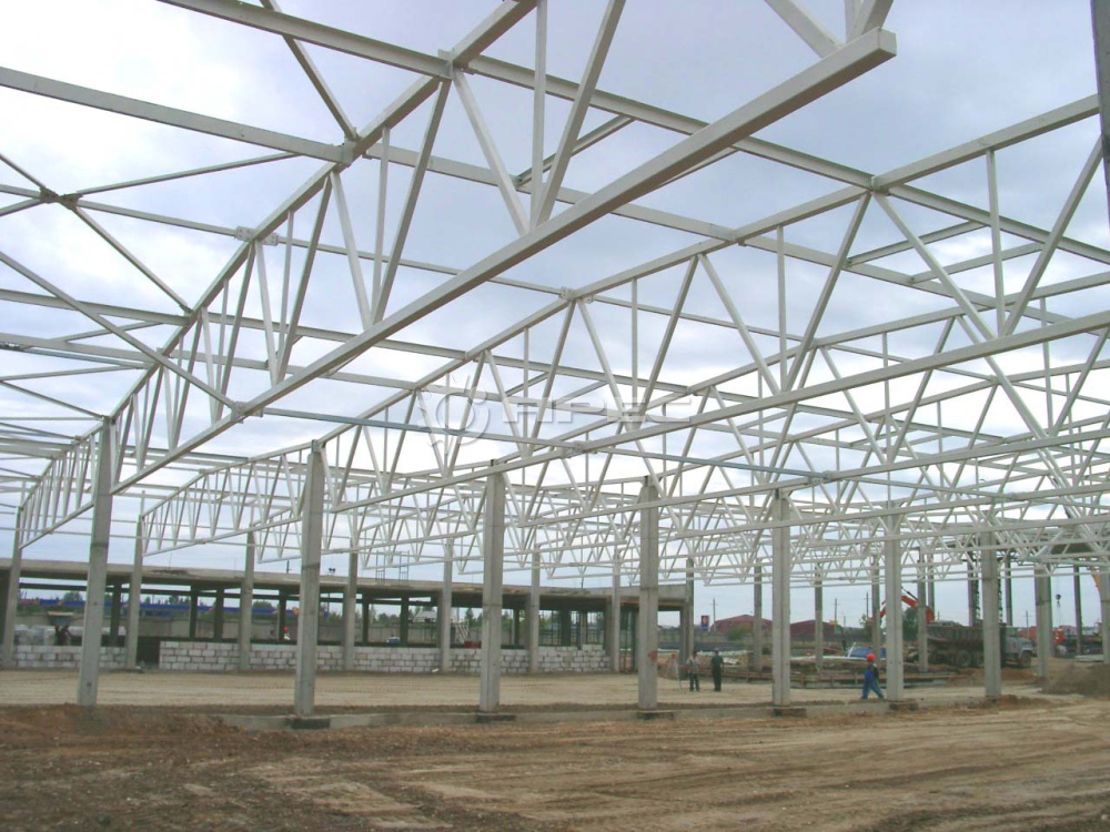 При возведении сооружения из металлоконструкций, сначала заливают бетонный фундамент, который должен обладать рядом характеристик и удовлетворят определённому типу колонн. Несущий каркас устанавливают на фундамент и удерживают при помощи закреплённых в нём анкерных болтов, стальных опорных листов или непосредственно самим фундаментом. Затем к стальному остову с помощью болтов и сварки присоединяют: перекрытия, фермы, продольные и поперечные балки, а также остальные элементы каркаса здания.