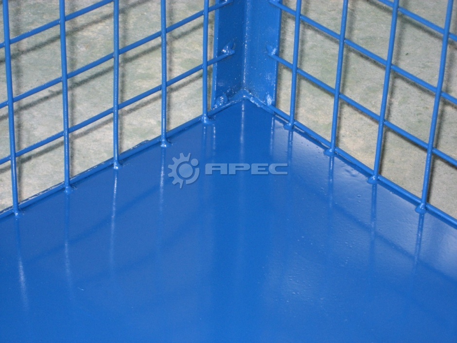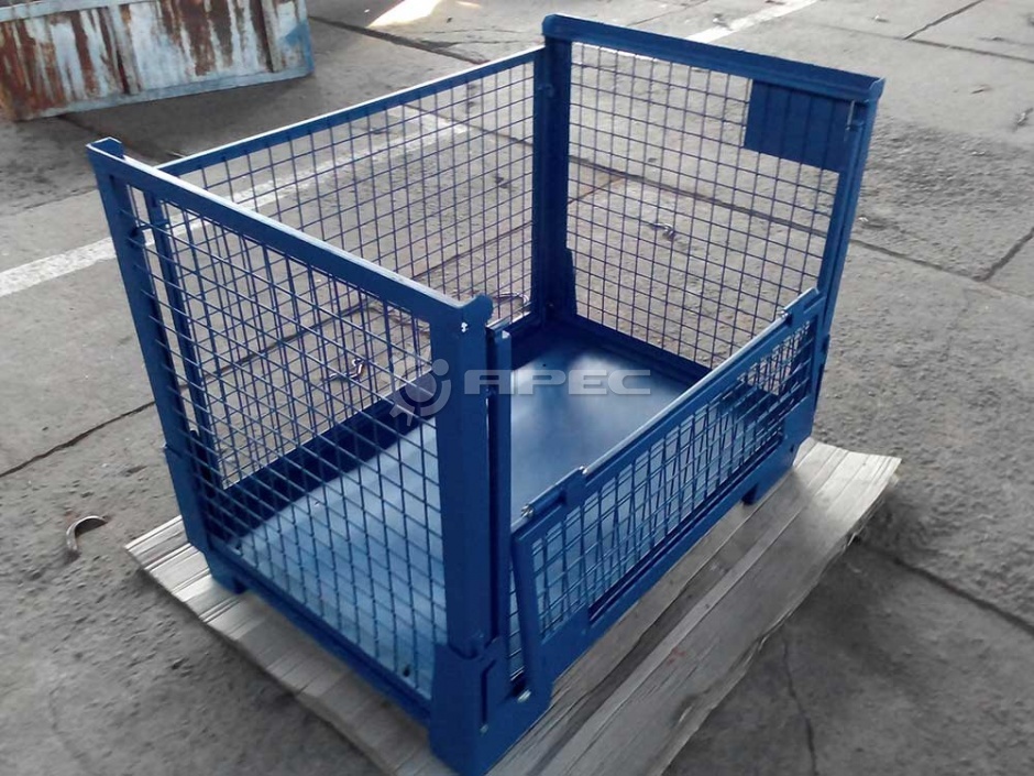 Цена зависит от величины и вида покрытия. Самые дешевые крашеные, но они недолговечны из-за склонности к образованию ржавчины. Более выгодный вариант – заказать производство хромированной, оцинкованной или покрытой полимером тары для склада.