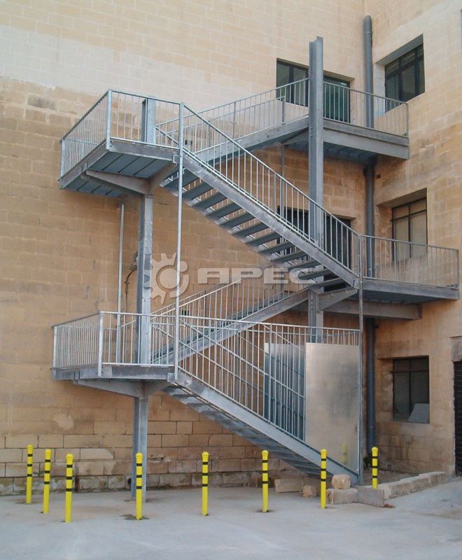 Наружные пожарные лестницы и ограждения служат для того, чтобы быстро эвакуировать людей в случае возникновения чрезвычайного происшествия, а также для обнаружения и блокирования огня и очага возгорания. Так как эти лестничные марши металлические, то у них есть вполне реальная проблема – коррозия, которая со временем может повлиять на прочность и несущие показатели.