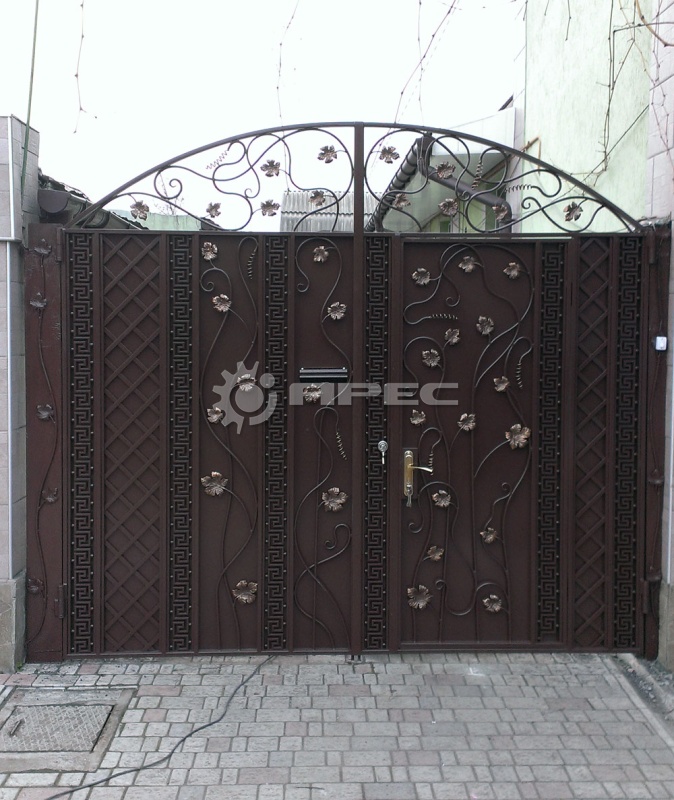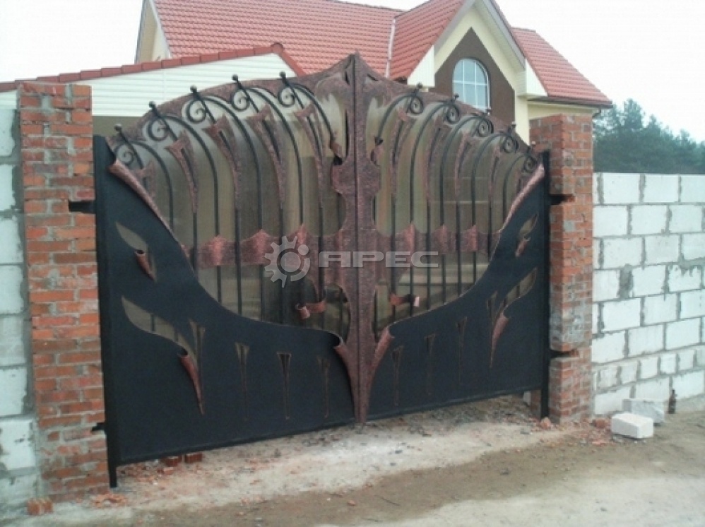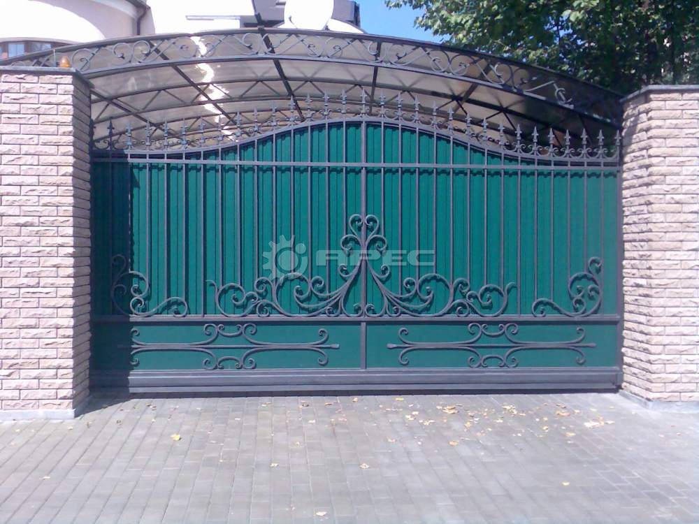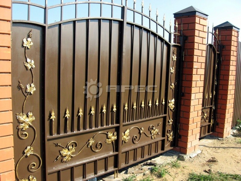 - Ворота с элементами художественной ковки, придающей индивидуальность.