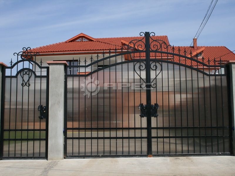 Распашные одно- или двухстворчатые ворота — классический и наиболее бюджетный вариант. Они могут быть глухими (из цельного металлического листа) или решетчатыми, что влияет на стоимость, вес и визуальную нагрузку. Откатные системы рекомендуются для участков с ограниченным пространством перед въездом, поскольку не требуют места для распахивания створок.